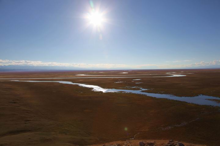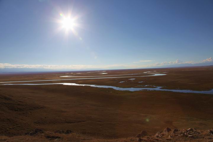 彎彎曲曲的河流在無際的草原上