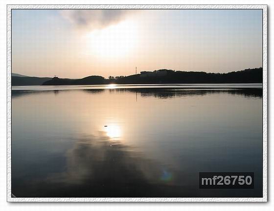 夕陽餘暉的鏡泊湖