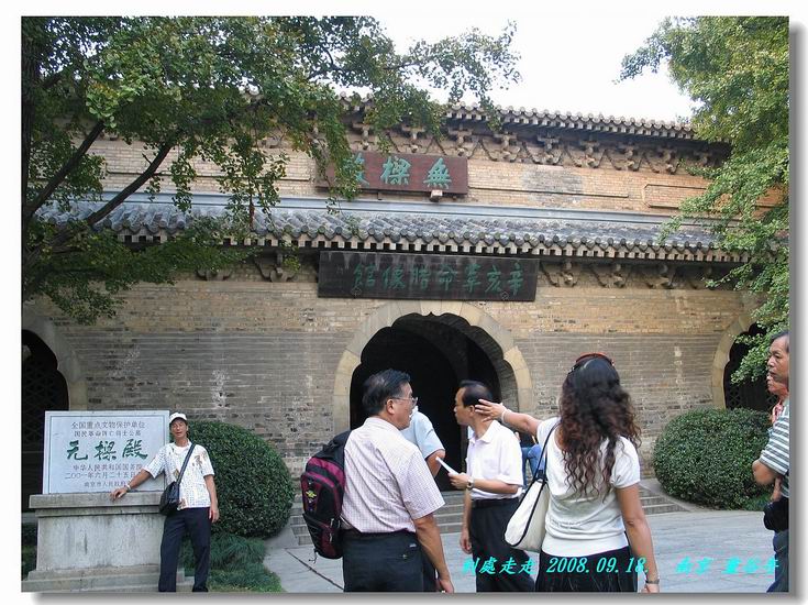 又因整座建築全用磚石砌成,無梁無椽,故又稱「無樑殿」