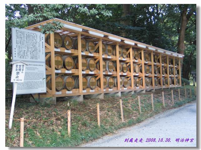 在步道的兩旁一邊擺著日本酒..