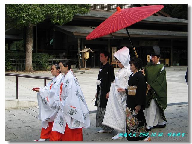 當天我們就看到一對新人在明治神宮中舉行儀式