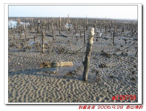 香山潮間帶也是牡蠣養殖的場所,此處的蚵田已經有上百年的歷史,