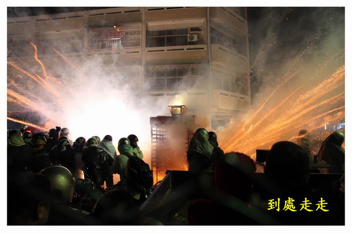 民眾選擇全副武裝衝進煙火秀場地,
