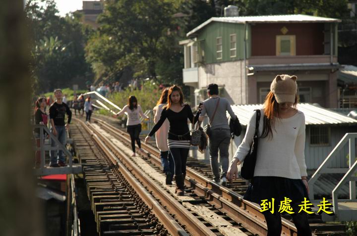 往火車站前的軌道,很多遊客漫步在鐵道邊
